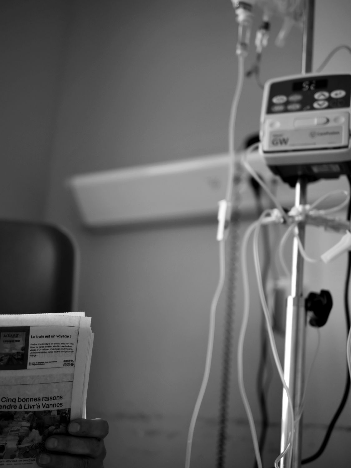 Au service hématologie de l’hôpital de Vannes, les médecins et les soignants s’occupent de nous. Nous : moi et le lymphome T. Moi j’ai droit à leur bienveillance, leur sollicitude, l’attention de tous les instants. Ils sont merveilleux. Le lymphome T a droit à des poches de chimio, des pilules de cortisone, des produits dont seul le dictionnaire médical a le secret. Il ne va pas aimer. Cancer-t-on la chimio ? Toutes les trois semaines, s’il vous plait.